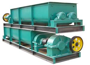 雙軸攪拌機是針對散狀物料的混合攪拌,采用螺旋推進的原理,將進入攪拌機的混合物攪拌均勻后送到下道工序。具有攪拌能力強,給料連續均勻的特點,攪拌葉片為可自由拆裝式,材質為耐磨合金鋼。本機操作簡單,維修方便,特別適合型煤、耐火材料等松散物料的混合攪拌。 |
